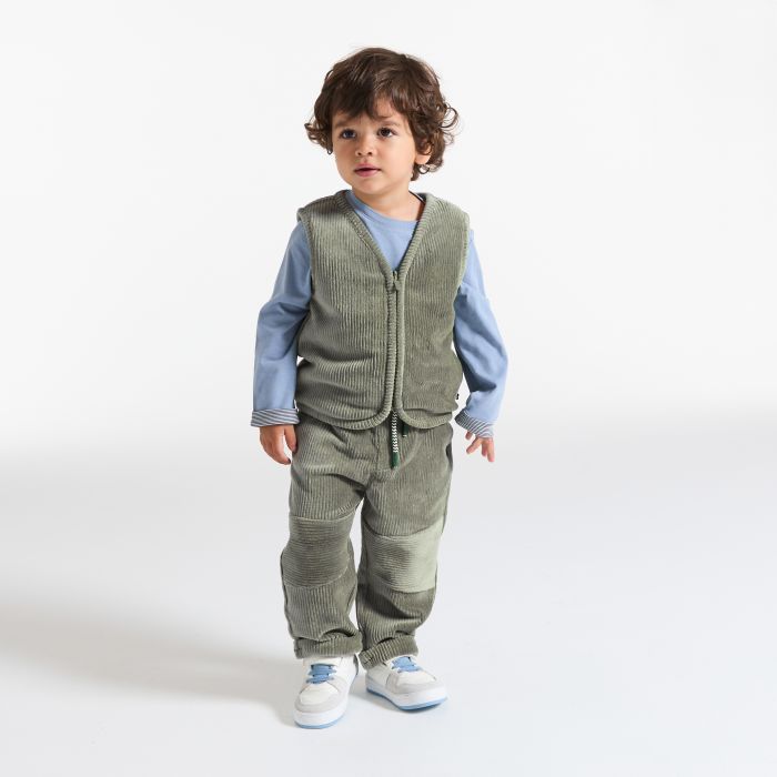 Baby boy's green corduroy, fur-lined gilet.
