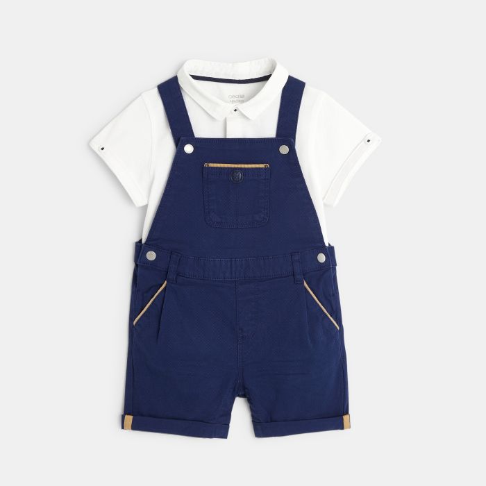 Baby boy's short overalls and blue polo shirt set