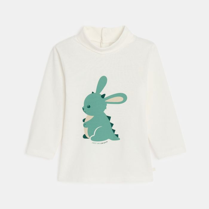Baby boy's white long-sleeve animal T-shirt