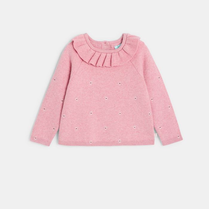 Baby girl's pink knitted jumper with ruffle collar