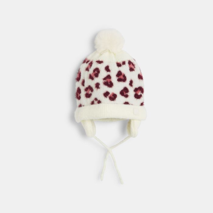 Baby girl's pink leopard-print knitted Peruvian hat