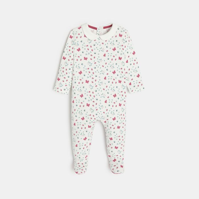 Baby girls' white butterflies and flowers jersey sleep suit