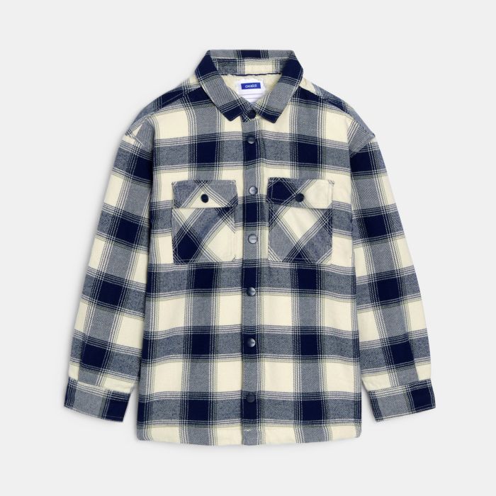 Boy's beige checked, sherpa-lined shacket