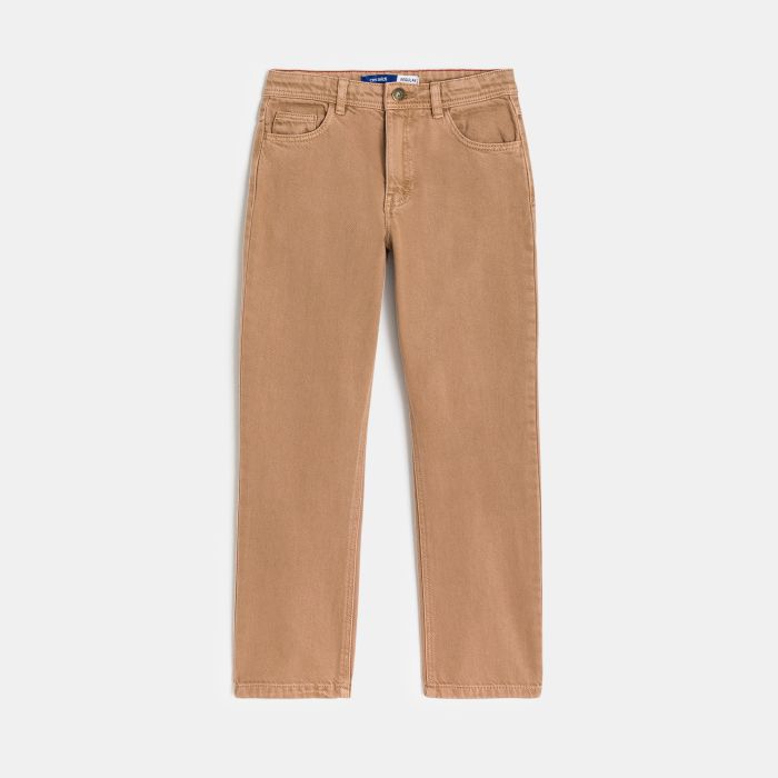 Boy's straight-cut light brown canvas trousers