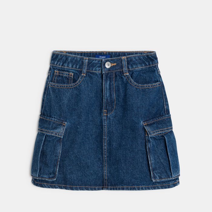 Girl's blue denim cargo skirt