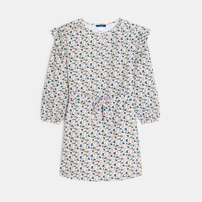 Girl's grey printed belted dress