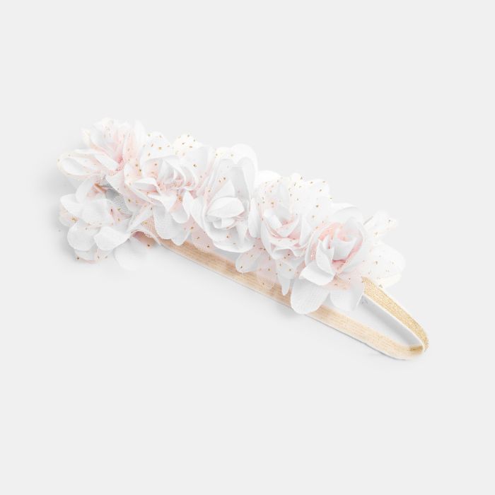 The hair accessory little girls will love! For a romantic look, this headband, adorned with fabric and tulle flowers, can slip on easily to create a lovely style. Elasticated at the hem.
