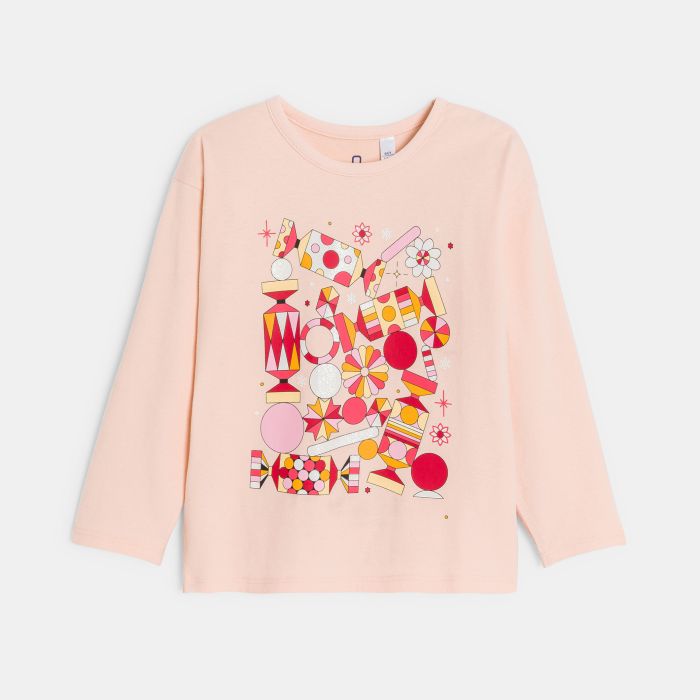 Girl's pink long-sleeved T-shirt by Okaïdi X Maison Tangible