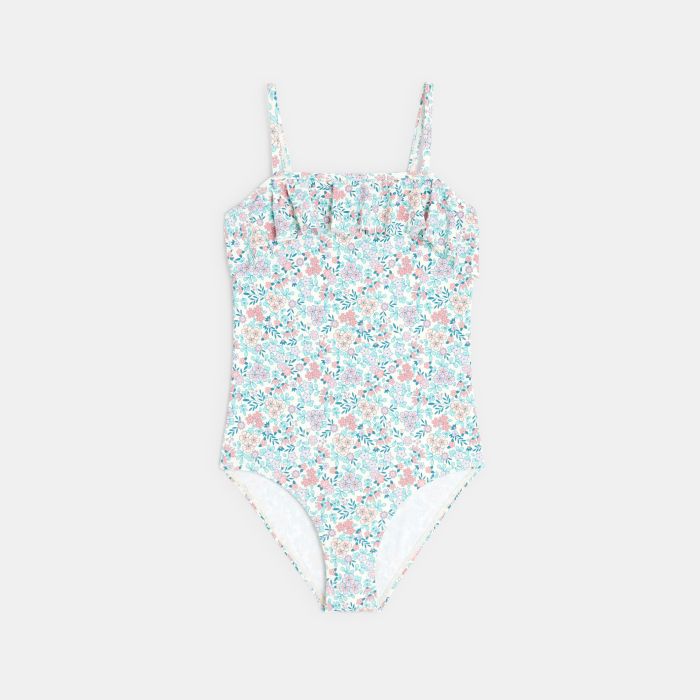 Girl's sky blue printed swimming costume