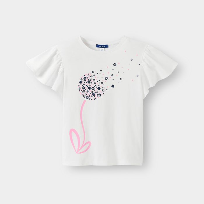 Girl's white floral jersey T-shirt