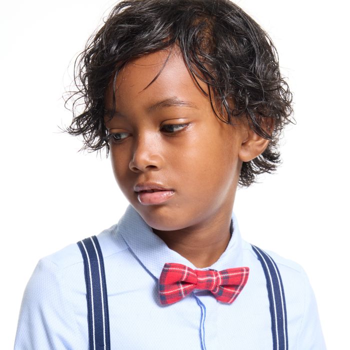 Girls red tartan bow tie