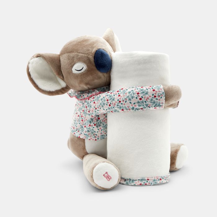 Newborn koala soft toy and fleece blanket in white