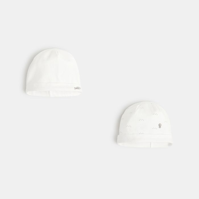Newborn white cotton jersey beanie (set of 2)