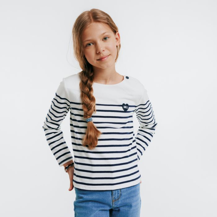 Striped t-shirt that can be personalized with a heart