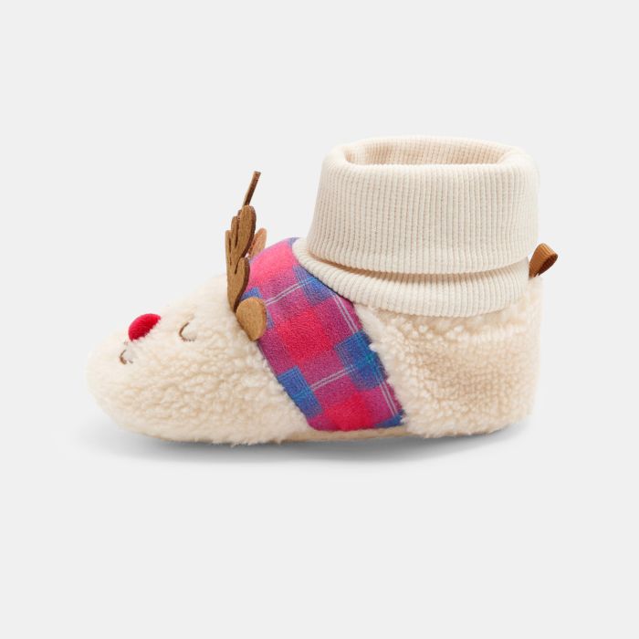 Unisex white baby reindeer slippers
