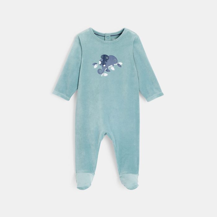 Velour footed sleeper with chameleon
